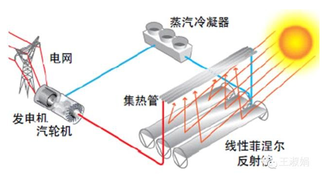 線性菲涅爾光熱發電示意圖