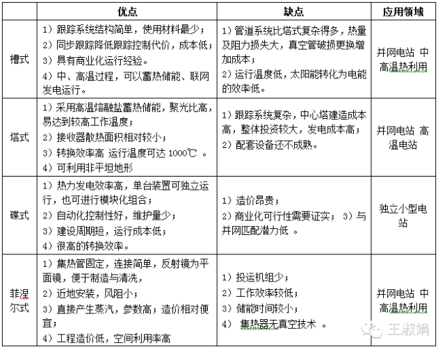 上述四種方式中,槽式和塔式是目前兩種主流的光熱利用技術。就目前而言,槽式技術更為成熟,塔式技術更具發展潛力。