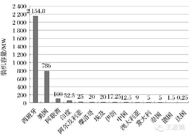 截至2012年底,全球已建成的光熱發電站在運裝機容量已達2574.25MW。