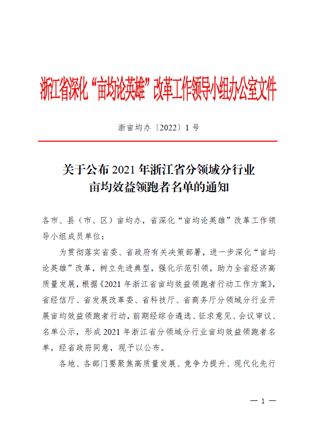 貝盛綠能獲評“浙江省制造業畝均效益領跑者”