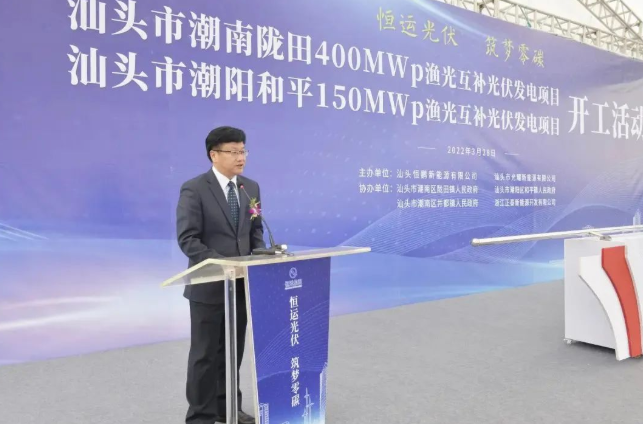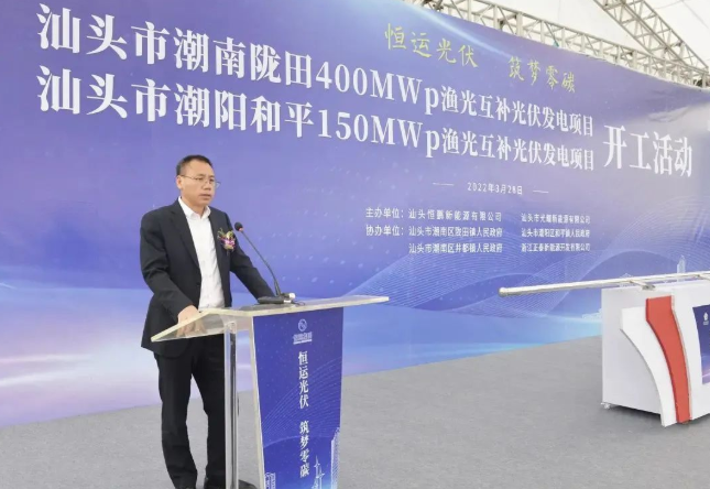 肖立在致辭中表示,在雙碳目標(biāo)推進(jìn)的背景下,新能源產(chǎn)業(yè)迎來了重大發(fā)展機(jī)遇。汕頭市發(fā)展光伏產(chǎn)業(yè)具有得天獨(dú)厚的自然優(yōu)勢(shì)。此次開工建設(shè)的隴田、和平漁光互補(bǔ)光伏發(fā)電項(xiàng)目,聚焦汕頭市構(gòu)建“三新兩特一大”新發(fā)展格局,助力汕頭市加快構(gòu)建清潔低碳,安全高效的現(xiàn)代能源體系,為區(qū)域?qū)崿F(xiàn)雙碳目標(biāo)作出重要貢獻(xiàn)。項(xiàng)目總投資約23億元,設(shè)計(jì)容量550MW,是亞洲最大漁光互補(bǔ)光伏發(fā)電項(xiàng)目之一,建成后可累計(jì)實(shí)現(xiàn)工業(yè)產(chǎn)值65億元,累計(jì)創(chuàng)造財(cái)政稅收約13億元。希望通過汕頭市、區(qū)政府和各參建單位的共同努力,將項(xiàng)目建設(shè)成為新能源精品樣板工程。