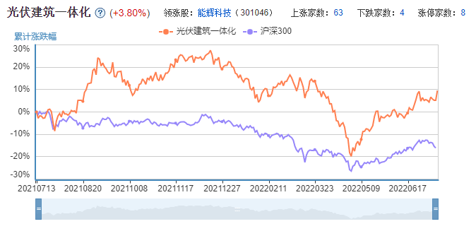 具體到企業(yè)來看,截至發(fā)稿前,光伏建筑一體化概念中,能輝科技、中信博、羅普斯金、方大集團(tuán)、清源股份、亞瑪頓等領(lǐng)漲。