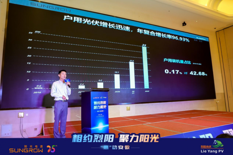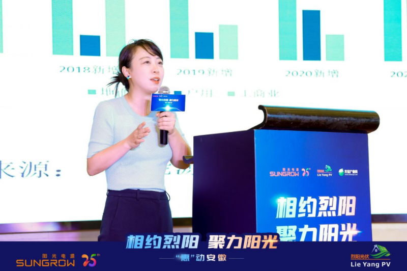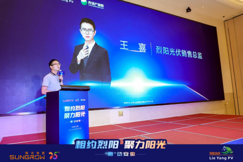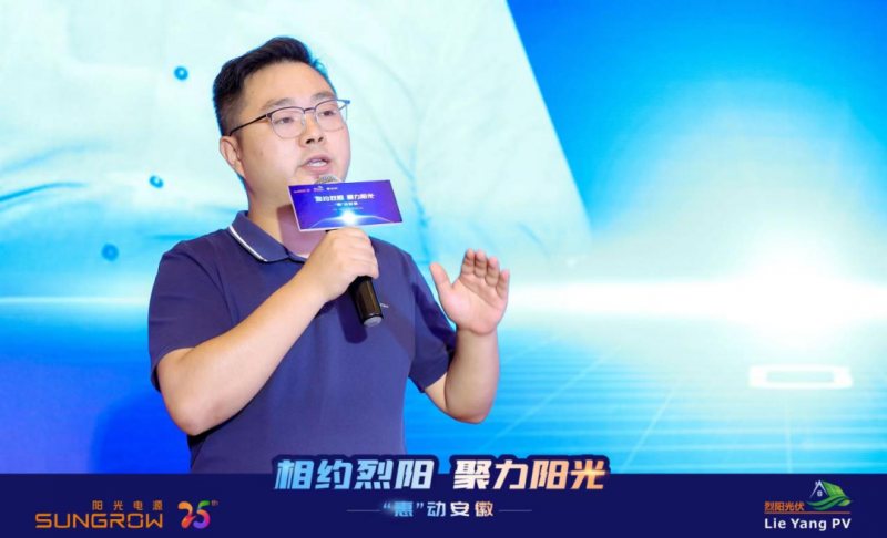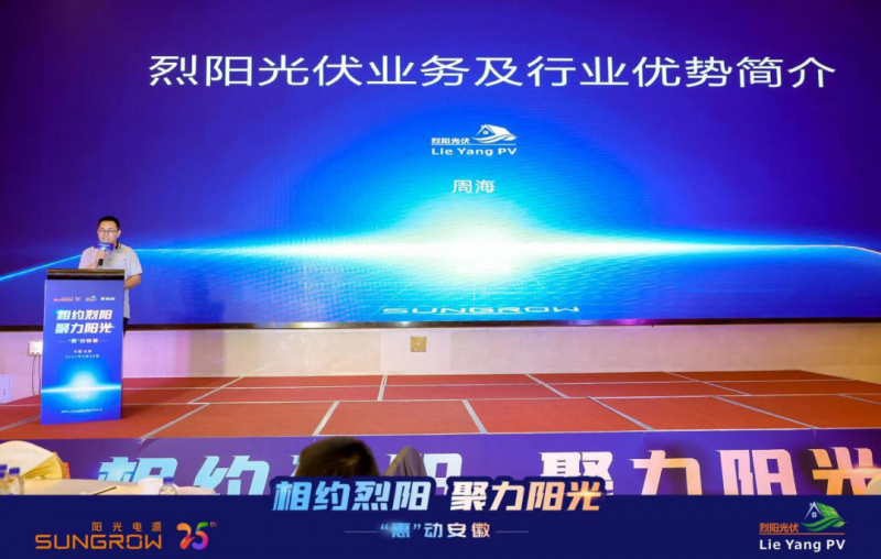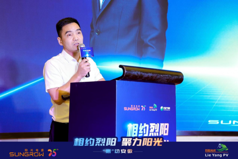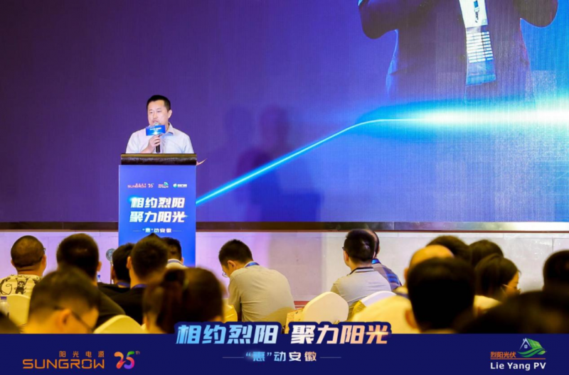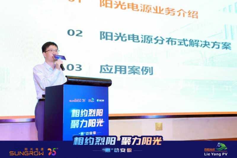 會議伊始,陽光電源國內(nèi)分布式銷售總監(jiān)汪瑞首先在致辭中表示:隨著雙碳目標(biāo)的提出,光伏行業(yè)進入快速發(fā)展的軌道,尤其是分布式光伏領(lǐng)域,近幾年增長翻倍。陽光電源作為全球逆變器的龍頭企業(yè),同時也是安徽本土企業(yè),一直期盼著能為安徽光伏產(chǎn)業(yè)做出更多的貢獻,希望今天借此機會與烈陽光伏一起為大家搭建一個互動交流的平臺,同時也為現(xiàn)場的嘉賓帶來更優(yōu)惠的政策。