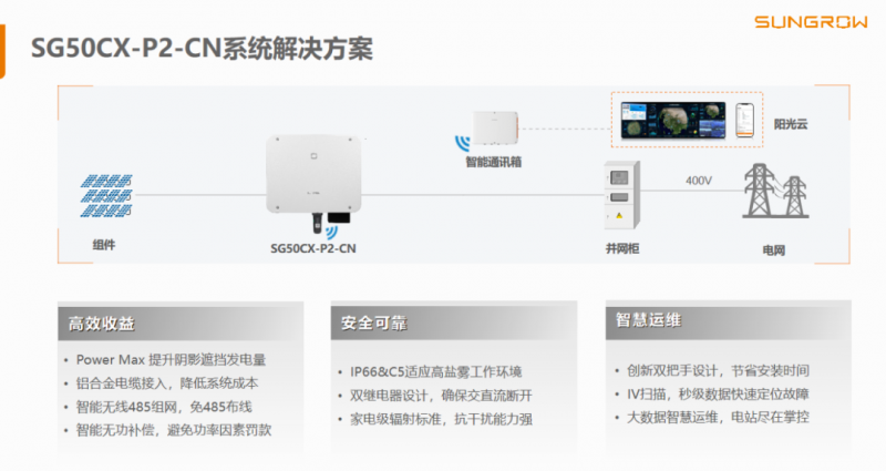 光伏產(chǎn)業(yè)的發(fā)展離不開創(chuàng)新的智慧方案,陽光電源渠道解決方案高級經(jīng)理賀金印帶來《陽光電源分布式解決方案》主題演講,首先介紹了陽光電源品牌的發(fā)展歷程及布局光伏逆變器、儲能變流及儲能系統(tǒng)等十大業(yè)務(wù)領(lǐng)域的技術(shù)創(chuàng)新成果。另外,他指出,在雙碳目標(biāo)背景下,分布式光伏面臨著收益下降、安全風(fēng)險、運維困難等問題,針對這些問題,陽光電源提出了SG50CX系統(tǒng)解決方案。