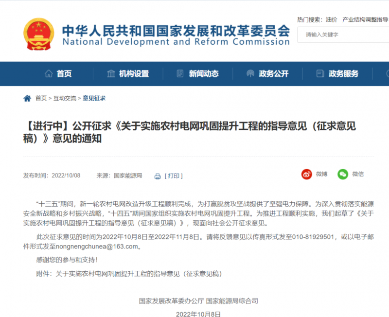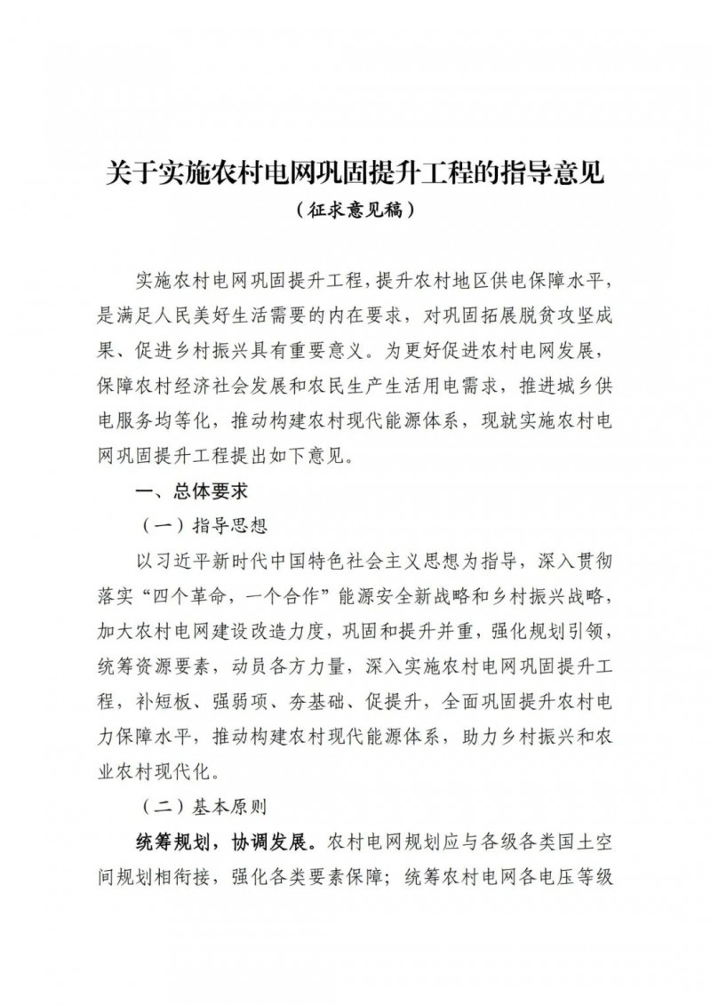 征求意見稿表示,為深入貫徹落實能源安全新戰(zhàn)略和鄉(xiāng)村振興戰(zhàn)略,“十四五”期間國家組織實施農(nóng)村電網(wǎng)鞏固提升工程。為推進工程順利實施,國家發(fā)改委起草了《關(guān)于實施農(nóng)村電網(wǎng)鞏固提升工程的指導(dǎo)意見(征求意見稿)》,現(xiàn)面向社會公開征求意見。