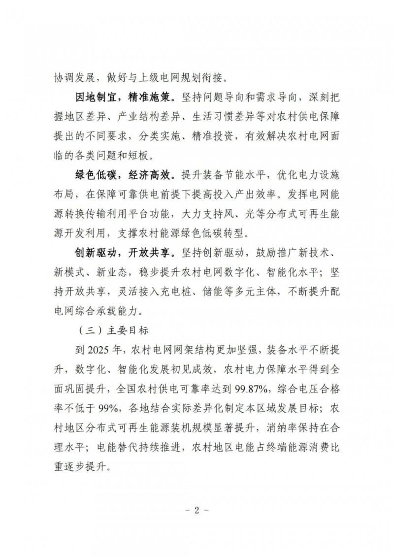 意見提出,到2025年,農(nóng)村電網(wǎng)網(wǎng)架結(jié)構(gòu)更加堅強,裝備水平不斷提升,數(shù)字化、智能化發(fā)展初見成效,農(nóng)村電力保障水平得到全面鞏固提升,全國農(nóng)村供電可靠率達到99.87%,綜合電壓合格率不低于99%,各地結(jié)合實際差異化制定本區(qū)域發(fā)展目標(biāo);農(nóng)村地區(qū)分布式可再生能源裝機規(guī)模顯著提升,消納率保持在合理水平;電能替代持續(xù)推進,農(nóng)村地區(qū)電能占終端能源消費比重逐步提升。
