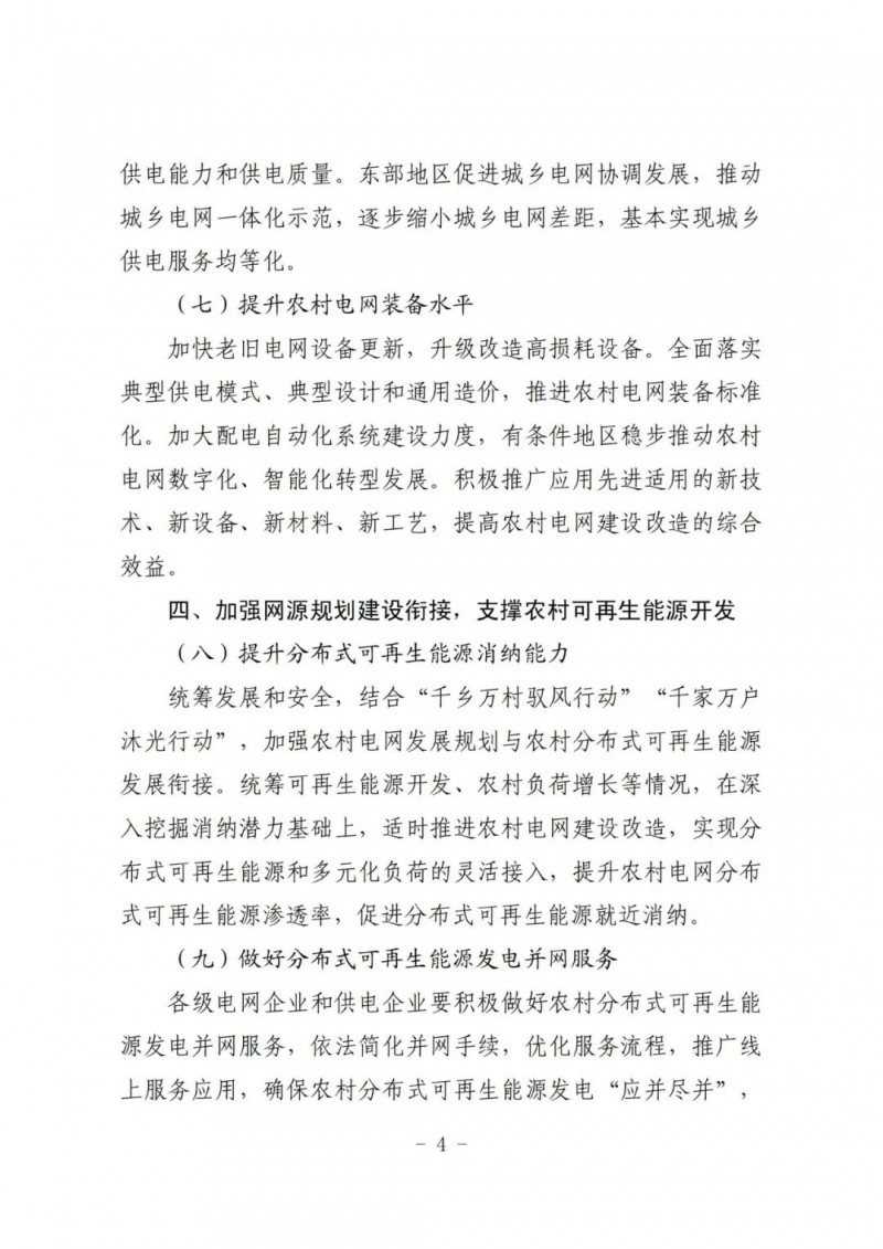 要統(tǒng)籌發(fā)展和安全,結(jié)合“千鄉(xiāng)萬村馭風(fēng)行動”“千家萬戶沐光行動”,加強農(nóng)村電網(wǎng)發(fā)展規(guī)劃與農(nóng)村分布式可再生能源發(fā)展銜接。統(tǒng)籌可再生能源開發(fā)、農(nóng)村負荷增長等情況,在深入挖掘消納潛力基礎(chǔ)上,適時推進農(nóng)村電網(wǎng)建設(shè)改造,實現(xiàn)分布式可再生能源和多元化負荷的靈活接入,提升農(nóng)村電網(wǎng)分布式可再生能源滲透率,促進分布式可再生能源就近消納。