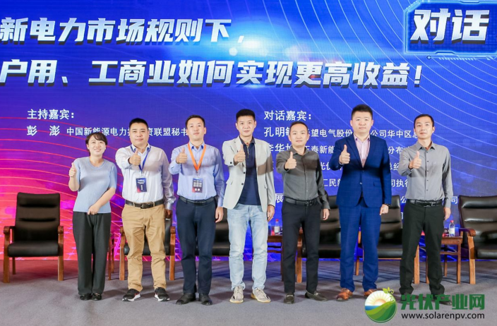 大會最后,禾望電氣股份有限公司華中區總監孔明敏、正泰新能科技有限公司分布式南區總監李華旭、TCL光伏科技北方大區總經理陳琳、贛州匯民新能源有限公司執行總經理羅歆、億多世(中國)融資租賃有限公司上海分公司業務總監郭展恩、金源華興融資租賃有限公司項目總監梅飛,在彭澎老師的主持下,一起帶來了精彩紛呈的專題對話——新電力市場規則下,戶用、工商業如何實現更高收益!