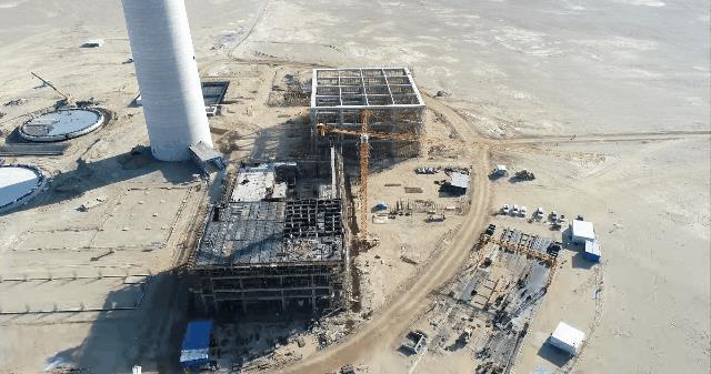 目前,該項目各項工作穩步推進中,已完成電網接入系統一二次設計評審;工程建設方面,吸熱塔、電控樓和空冷系統框架已結頂,儲罐基礎施工已基本完成,其他輔助系統和廠前區上部結構正在施工。預計2023年上半年完成所有土建工程,下半年完成所有安裝工程,2023年底具備并網發電條件。