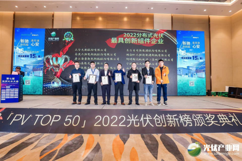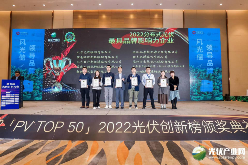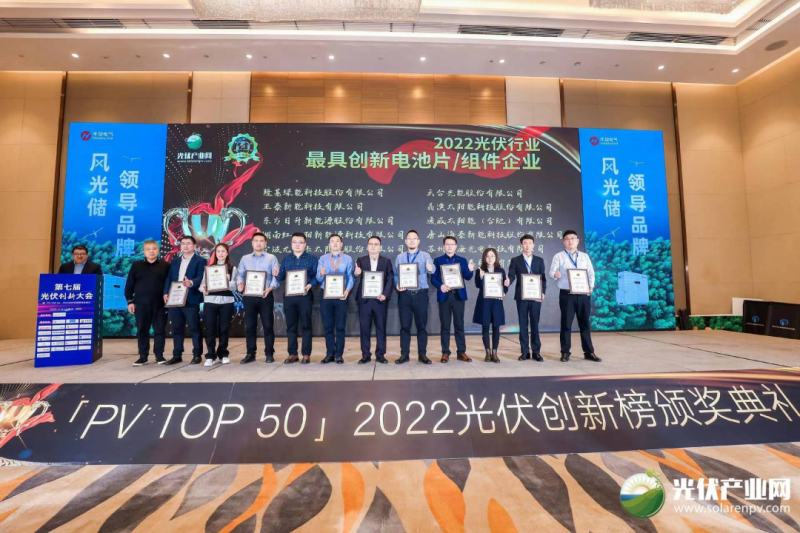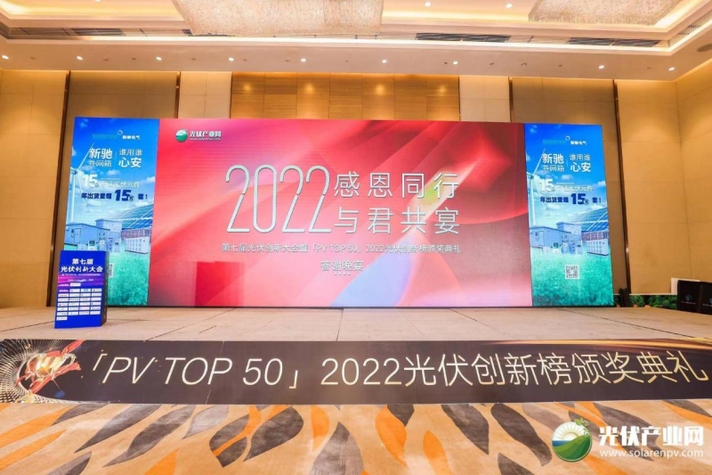 11月21日,「PV TOP 50」2022光伏創(chuàng)新榜頒獎典禮(「PV TOP 50」2022光伏行業(yè)創(chuàng)新力企業(yè)50強榜單發(fā)布)在浙江·杭州圓滿落下帷幕!