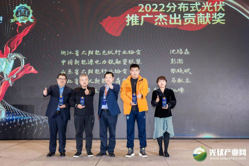 晚會最后還特別給浙江省太陽能光伏行業(yè)協(xié)會沈福鑫、中國新能源電力投融資聯(lián)盟彭澎、山東省太陽能行業(yè)協(xié)會張曉斌、河北省光伏新能源商會馬獻立、河南省產業(yè)發(fā)展研究會新能源專委會姚峰頒發(fā)了2022分布式光伏推廣杰出貢獻獎。