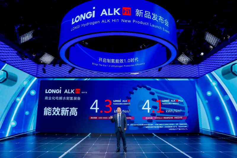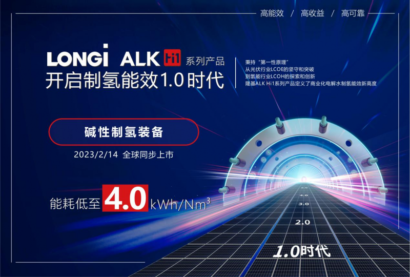 2月14日,隆基氫能在北京面向全球發布全新一代堿性電解水制氫設備ALK Hi1系列產品,不斷下探能耗提升能效,定義商業化電解水制氫能效新高度。