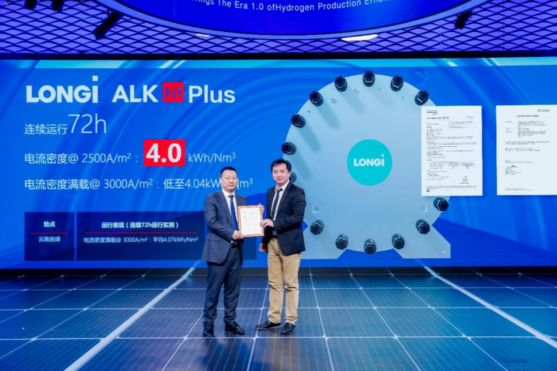 目前,LonGi ALK Hi1系列產品已完成實證測試,性能表現經過挪威船級社與德凱質量認證(上海)有限公司等第三方權威機構認證,按照國標GB-32311-2015來衡量,LonGi ALK Hi1系列產品達到了制氫系統的一級能效。這也是挪威船級社在中國發布第一份氫能產品能效認可證書。同時,就實證數據來看,隆基氫能的產品性能已經大幅領先于現有的行業商業化水平。