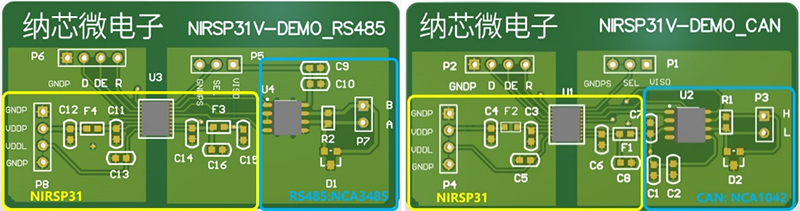 為方便評估,納芯微提供隔離RS485通信Demo板NIRSP31+NCA3485,隔離CAN通信Demo板NIRSP31+NCA1042。