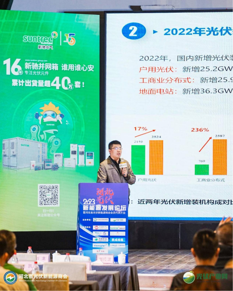 光伏星京津冀分公司負責人劉杰:對于2023年河北戶用市場的發展,我想用兩個詞來概括,第一個是“堅守”,我們認為伴隨著經濟發展和電網升級改造,消納能力會不斷提升,冀南市場會變得活躍起來,而冀北市場據我們走訪調研發現,還有著很大的發展潛力;第二個詞是“深耕”,我們要把冀南市場可做的容量抓到,深入挖掘冀北市場可開發的潛力,這也是我們今年在河北的主要目標。