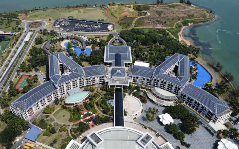 于是,在島內亞論酒店、新聞中心、停車場等可利用的屋頂、空地上,一塊塊光伏組件產品成為這些地標建筑的“新外衣”,源源不斷地為博鰲亞洲論壇提供重要的綠電供應和保障。