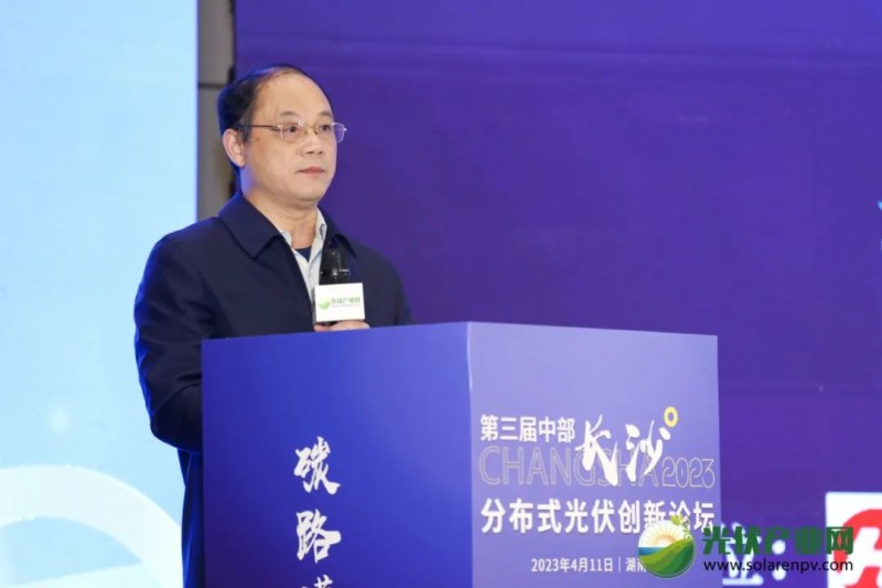 2022年,湖南全年光伏新增裝機183.8萬千瓦,其中分布式光伏新增裝機達到118.8萬千瓦,較2021年同比增長了284.5%。抓住機遇,順勢而上!為助推湖南光伏市場取得新的突破,4月11日,由湖南省宏遠經貿研究院、中國新能源電力投融資聯盟、光伏產業網聯合主辦的“2023第三屆中部(長沙)分布式光伏創新論壇”在湖南長沙隆重召開,論壇以“‘碳’路瀟湘,追‘光’前行”為主題,邀請到主管部門領導、行業權威專家、知名廠家代表、EPC企業、渠道服務商、光伏投資商、投融資機構等超400人齊聚一堂,共同探討湖南分布式光伏市場、整縣推進新開發模式、BIPV發展前景、光伏+儲能發展現狀及趨勢等熱點話題,為促進湖南省分布式光伏健康持續發展獻計獻策,貢獻力量!大會由中國新能源電力投融資聯盟秘書長彭澎主持,采取線上同步直播的方式,吸引了行業內外近8000人次觀看!湖南省工業和信息化廳一級調研員肖銀鋒在致辭中表示:自2020年9月,雙碳目標提出以來,湖南省出臺了一系列政策,推動國產新能源產業創新發展。根據《“十四五”湖南可再生能源發展規劃》,到2025年,全省光伏發電總裝機規模將達到1300萬千瓦以上,被納入整縣屋頂分布式光伏發展試點的12個縣市區,將全面啟動開展分布式光伏就地就近開發利用,推動工商業廠房、公共機構、商業建筑等場所合理地安裝分布式光伏,鼓勵分布式光伏與交通、建筑、新基建等融合發展。