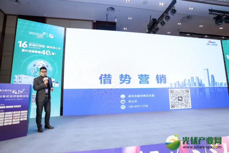 碳交易市場作為低成本減排的市場化手段,有望成為中國碳中和目標達成的有效工具。湖南省聯合產權交易所雙碳服務中心總經理楊健楠重點介紹了碳交易市場、綠色電力市場的發展現狀及市場空間,同時對“綠電交易與能耗雙控、綠電交易與碳交易如何協調”等熱點話題進行了探討。楊健楠表示,“十四五”期間,預計石化、化工、建材、鋼鐵、有色、造紙、電力、民航8大重點能耗行業都將納入到碳市場,屆時配額發放可達到50億噸,中國將成為全球最大的碳排放交易市場。同時他也指出,中國碳交易市場未來可能允許綠色電力消費企業免除一部分碳交易履約義務,電碳市場雙重出售將不被允許。山東潤馬光能科技有限公司華南區總監安山水結合項目案例,對公司發展歷程、品牌定位以及山東潤馬光能的技術潛力及產品優勢做了詳細介紹,多維度論證了“選潤馬,回本更快”的企業理念。發言中,安山水一再表示,“潤馬的資源就是各位的資源,潤馬愿意把我們的品牌以及屬于我們的資源免費對接給大家,為的就是合作共贏,把項目平安、平穩落地。”會上,黑龍江省佳木斯市樺川縣招商專班負責人、民政局局長陳景陽做招商推介。樺川縣位于黑龍江省東北部,三江平原腹地,松花江下游南岸,這里區位優勢明顯,自然條件優越,產業基礎良好,擁有旺盛的市場需求和巨大的發展潛力。陳景陽局長誠摯地邀請企業家們前去投資考察,樺川必將以“企業至上”的服務意識和工作效率,讓企業家放心投資、舒心創業、安心發展,共同書寫合作共贏的發展新篇章。鑫和綠色能源集團湖南分公司總經理文韜結合第七次人口普查數據,對各省戶用光伏潛力用戶,預計裝機規模進行了預估。數據顯示,全國有4億家庭,其中戶用光伏潛力用戶為2.7億;按照20%覆蓋率20KW/套的安裝規模考慮,戶用光伏的理論潛力為5400萬套,約合1000GW。具體到重點省份,湖南省戶用裝機潛力預期將達到114GW,潛在市場巨大。同時,他還提出了2023年分布式市場新的八大變化,即無疫情化、由北向南化、組件波動化、項目公司化、競爭白熱化、入場臺階化、模式多樣化、品牌集中化。作為光伏工程一站式配套服務商,安徽莫藝建筑工程有限公司總經理謝明星詳細介紹了莫藝創能的防腐、翻新、防水、加固、設計、建設的工程配套優勢、產品優勢和售后服務優勢,通過行業案例分析光伏行業痛點和項目難點,結合自身的產品優勢和工程配套優勢,提供針對性產品及解決方案,真正做到一站式配套服務。大力發展光電一體化建筑是我國建筑能源轉型中的關鍵一步,對于可持續發展具有重要的戰略意義!安徽宇信新材料有限公司副總經理徐澤華從概念、分類、前景三個維度,結合公司的設計思路、方案特點和項目案例對BIPV進行了一輪完整且系統化的介紹。安徽宇信光伏建筑一體化解決方案,圍繞著限流、導流、阻燃等幾個核心要點展開設計,具備新老屋頂節約彩鋼瓦或翻新費用、屋頂使用率高、便于自動化清洗等特點。“綠能云的本質是數字化管理平臺,我今天演講的主題,是如何讓資產變現升值、獲得最大收益。”綠能中環(西安)新能源科技有限公司副總裁史志明的發言開門見山。“不過這一切都有個前提,那就是把運營管理的服務做到標準化,才能夠實現降本增效。”史志明從市場引導、產品賦能、成本管控、服務體系四個維度詳細介紹了公司的業務模式,他將產品特點概括為九個字“用得起、用得上、用得好”。“相較于銀行項目的產品,融資租賃有著效率高、放款早、產品靈活等特點,更適合分布式電站場景。”國藥控股租賃清潔能源南區負責人王保頌表示。作為國務院國資委直接管理,綜合實力和規模領先的綜合性醫藥健康產業集團,目前,國藥控股的服務網絡覆蓋全國22個省,5個自治區,4個直轄市,服務客戶數超過4000+。長沙銀行作為湖南最大的法人金融企業,近年來堅持將綠色金融列入四大特色戰略品牌之一,深入推進綠色信貸體系建設,不斷創新產品和服務,持續發揮湖湘綠色金融先行者作用。據長沙銀行匯融支行機構客戶中心經理李雨龍介紹,目前,該行的分布式光伏業務主要分為四類,即能源管理合同貸款、供電廠儲能貸款、EPC訂單融資、自主自投貸款。