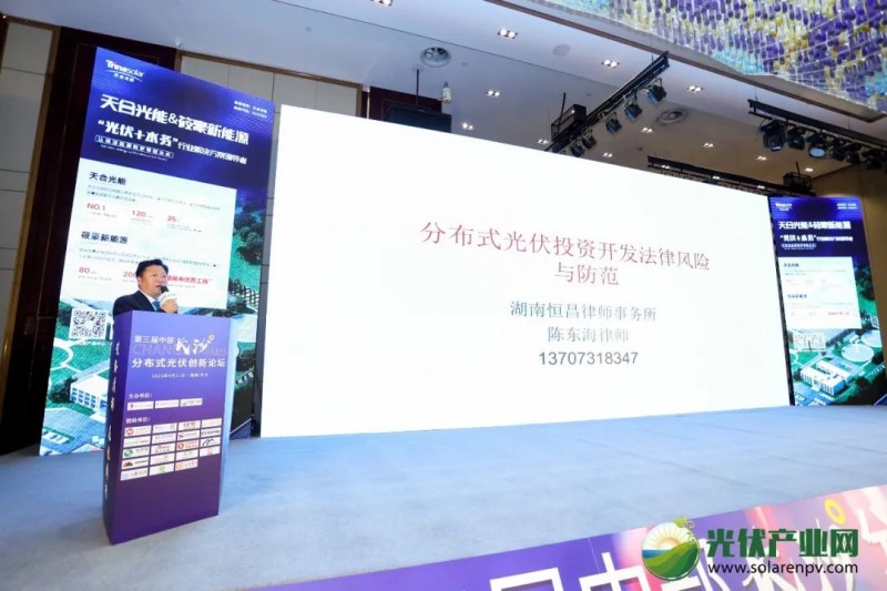 “如果說地面光伏電站最大的法律風險在于土地的話,那么分布式光伏最大的法律風險無疑就是屋頂!”近年來,分布式光伏項目案件日益增多,從側面反應出分布式光伏項目火熱的程度,但也暴露出不少現存問題。湖南恒昌律師事務所律師陳東海以法律人的視角,對分布式光伏投資開發中可能會遇到的各類問題逐一分析,不僅有常見的電站選址、鄰里矛盾,還有審批備案、施工建設過程中,必須要考慮到的法律依據。干貨滿滿的主題分享結束以后,中國新能源電力投融資聯盟秘書長彭澎與7位對話嘉賓圍繞“電力市場改革下湖南分布式光伏發展之道”這一話題進行了深入的探討與交流。