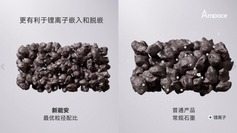 在技術創新上,新能安昆侖系列鋰電池首次采用新型預鋰化技術構建 “蓄鋰池”,實現對系統損耗鋰離子的補充;在化學體系創新上,新能安昆侖系列鋰電池在石墨及電解液都使用了行業首創配方,實現對鋰離子損耗速度的減緩。其中,新型石墨具備更穩定的結構,循環過程中可實現鋰離子自由脫嵌,且可減少產生新的界面及活性鋰離子消耗;新型電解液引入新能安自研添加劑,在石墨表面構建致密均勻的保護膜,從而減少循環過程中鋰離子的損耗。