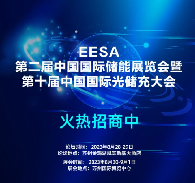 儲能領跑者聯盟(EESA)將于2023年8月28日—9月1日在蘇州舉辦EESA第二屆中國國際儲能展覽會暨第十屆中國國際光儲充大會。