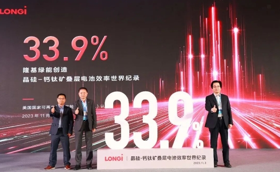 中國光伏行業協會副秘書長江華表示,隆基綠能創造的33.9%晶硅-鈣鈦礦疊層電池效率世界紀錄,意味著該企業在晶硅-鈣鈦礦疊層電池技術的研發處于全球領先水平。