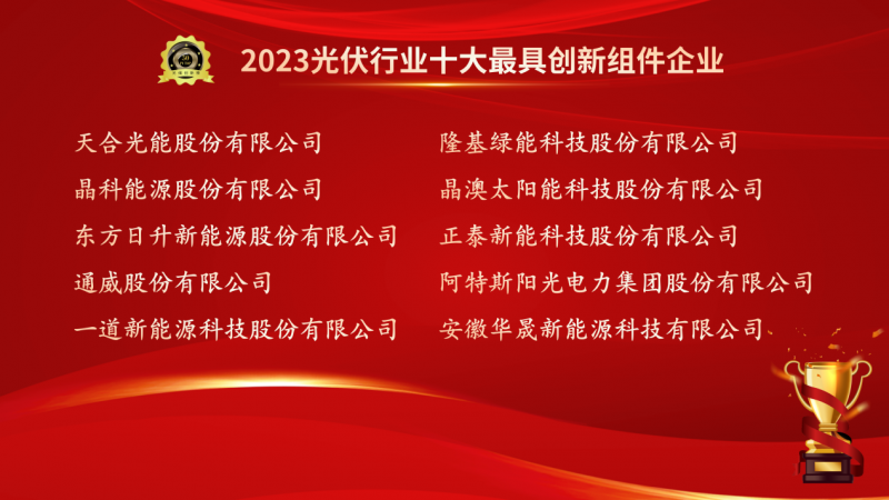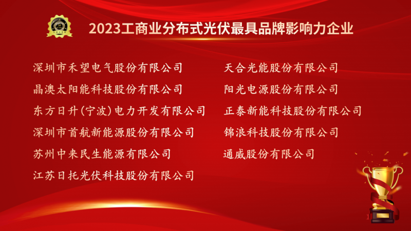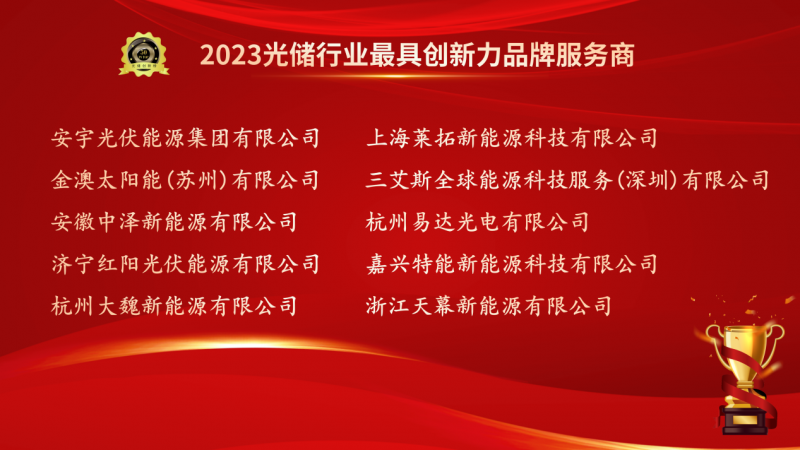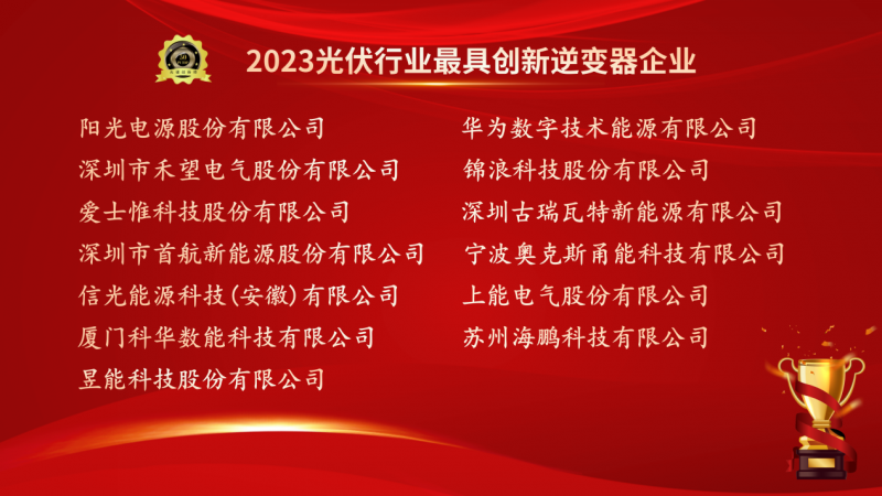 2023年12月27日,「PV TOP 50」2023光儲創新榜頒獎典禮(「PV TOP 50」2023光儲行業創新力企業50強榜單發布)在浙江杭州圓滿收官!