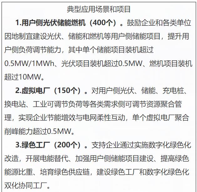 1.用戶側(cè)光伏儲能燃機(jī)(400個)。鼓勵企業(yè)和各類單位因地制宜建設(shè)光伏、儲能和燃機(jī)等用戶側(cè)儲能項(xiàng)目,提升用戶側(cè)負(fù)荷調(diào)節(jié)能力,其中單個儲能項(xiàng)目裝機(jī)超過0.5MW/1MWh、光伏項(xiàng)目裝機(jī)超過0.5MW、燃機(jī)項(xiàng)目裝機(jī)超過10MW。