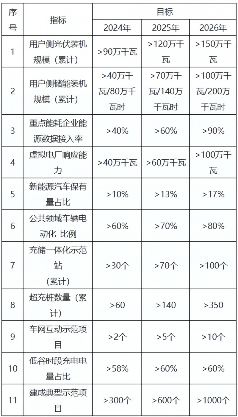 (四)加快推進(jìn)新能源汽車與電網(wǎng)融合互動發(fā)展。提升新能源汽車與電網(wǎng)互動能力,完善智能充放電設(shè)施布局,推動充儲一體化建設(shè),推廣智能有序充電設(shè)施,擴(kuò)大雙向充放電設(shè)施規(guī)模。強(qiáng)化電網(wǎng)支撐保障,加強(qiáng)高承載力互動電網(wǎng)規(guī)劃建設(shè),打造車網(wǎng)互動管理平臺,強(qiáng)化充放電負(fù)荷管理,提升供電服務(wù)能力。推動車網(wǎng)融合互動示范應(yīng)用,拓展充儲一體化、智能有序、雙向充放電示范場景。建設(shè)車網(wǎng)互動配套生態(tài)圈,加強(qiáng)核心技術(shù)及裝備攻關(guān),加快推進(jìn)車網(wǎng)互動標(biāo)準(zhǔn)修制訂,深化車網(wǎng)融合互動商業(yè)運(yùn)營模式。建設(shè)規(guī)范化管理體系,強(qiáng)化電價激勵引導(dǎo)作用,優(yōu)化完善市場機(jī)制,營造車網(wǎng)融合互動發(fā)展的良好氛圍。力爭到2026年,建成充儲一體化示范站30座,完成10個以上車網(wǎng)互動示范項(xiàng)目。(責(zé)任單位:市經(jīng)濟(jì)信息委、市交通局、市住房城鄉(xiāng)建委、市城市管理局、市規(guī)劃自然資源局、市國資委,國網(wǎng)市電力公司)