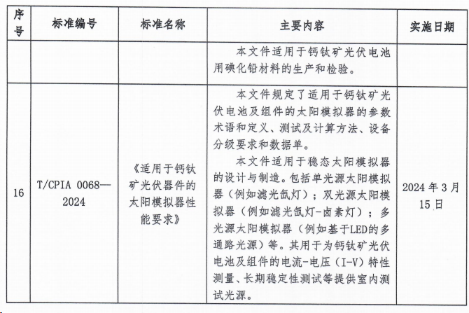 T/CPIA0068—2024《適用于鈣鈦礦光伏器件的太陽模擬器性能要求》