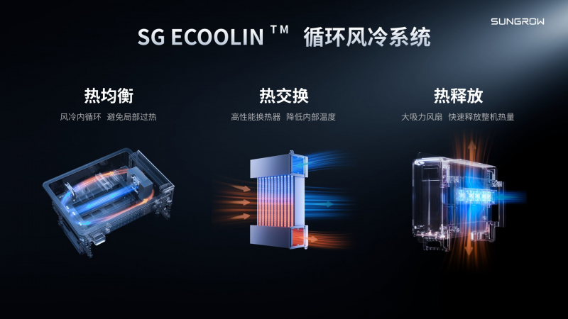 ?自研SGECOOLIN™循環風冷系統,穩定控溫,整機25年高效運行。通過內部風冷循環,實現腔內均溫,避免內部局部過熱引起故障;采用高性能換熱器,相比傳統設計方案,內部環溫降低10℃;行業首創T型風道散熱方案,散熱效率提升80%的同時,保持65分貝的低噪音性能。