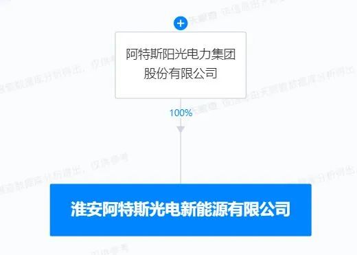 天眼查資料顯示,淮安阿特斯光電新能源有限公司由阿特斯陽光電力集團股份有限公司100%控股。