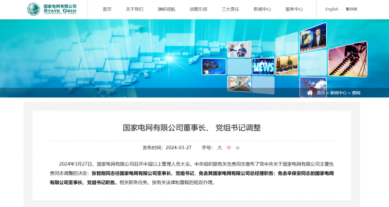 2019年04月,任國家電網有限公司副總經理、黨組成員;