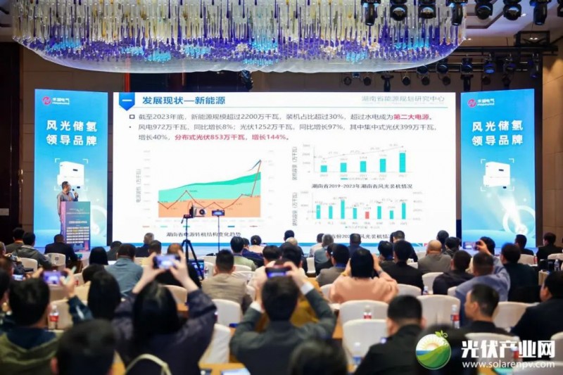順勢而為、乘勢而上,為加快推動分布式光伏與儲能產業發展,助推湖南光儲產業高質量發展,4月9日,由光伏產業網聯合湖南省宏遠經貿研究院、中國新能源電力投融資聯盟共同主辦的2024第四屆中部(長沙)分布式光伏與儲能創新論壇在湖南長沙隆重舉行。本次論壇以“旭龍乘風光儲湘遇”為主題,邀請到主管部門領導、行業專家、知名企業代表、EPC企業、渠道服務商、光伏投資商、投融資機構等500余人聚首湖南長沙,共同“湘談”湖南光伏市場、BIPV發展前景、光伏+、光儲融合、電力市場交易等熱點話題,旨在促進中部地區分布式光伏與儲能產業的交流與合作,加速技術創新和產業融合。本屆論壇呈現規模大、陣容強、干貨多等特點,采取線上同步直播的方式,反響熱烈,吸引了行業內外近五萬人次觀看!