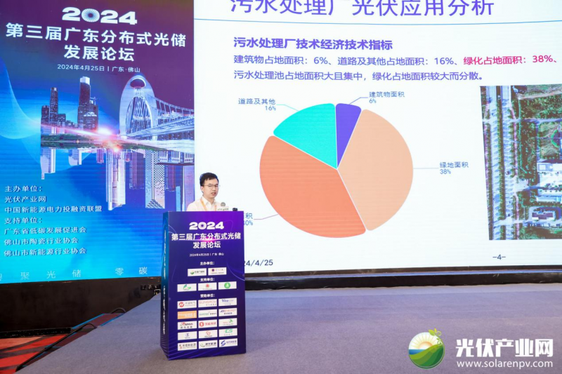 廣東永光新能源設計咨詢有限公司新能源副總監李遠康分享了光伏+污水廠的項目經驗。他表示,污水廠屋頂情況比較復雜,大部分是分散的屋面,剛性支架可以解決一部分問題,但跨度大、投入成本高,而柔性支架則經濟性相對較好且安裝量也比較大,解決了設計、安裝問題,廣東的污水+光伏潛力可達1~1.5GW。