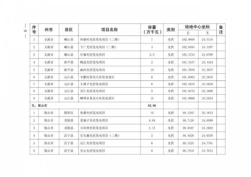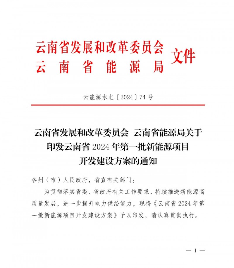 4月25日,云南省發改委及能源局聯合發布《關于印發云南省2024年第一批新能源項目開發建設方案的通知》。《通知》指出,納入云南省2024年第一批新能源項目開發建設方案實施的項目共141個,總規模1018.325萬千瓦。其中,光伏項目規模1006.36萬千瓦,風電11.965萬千瓦。