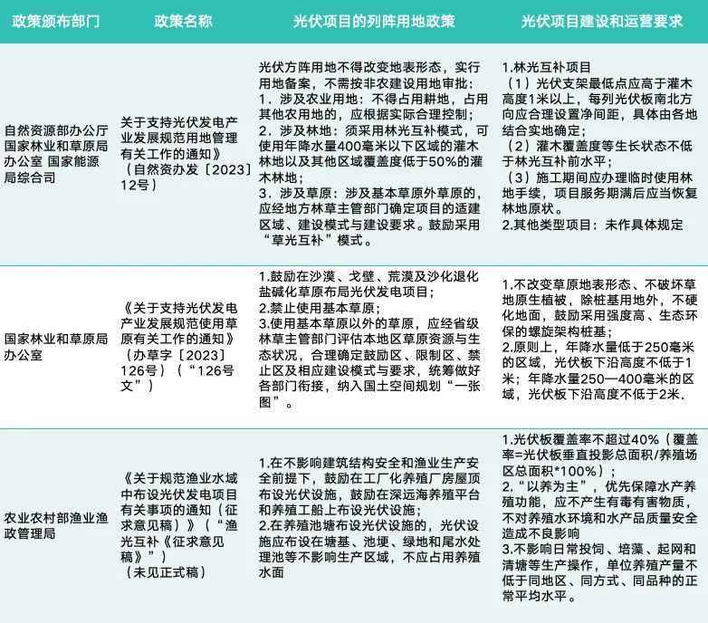 本文從國家與部分地方兩個層面展開,圍繞草光互補、林光互補、農光互補、漁光互補等常見復合光伏項目類型,總結梳理復合型光伏項目的列陣用地政策以及建設運營要求,同時提出相關合規風控建議,供大家參考。