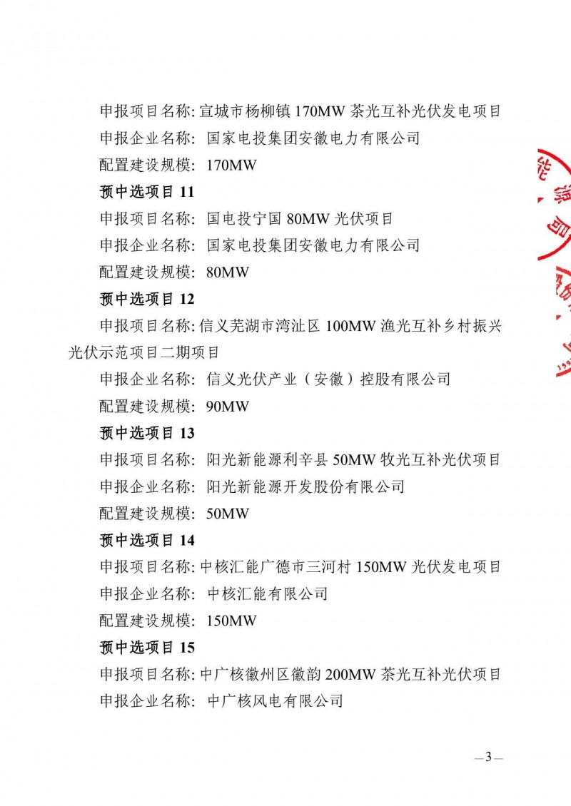 近日,安徽省能源局發布了2023年光伏發電項目建設規模競爭性配置中選結果公告。