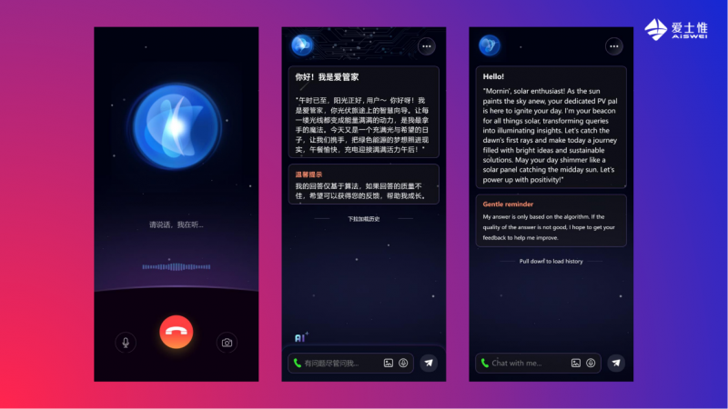 隨著光伏發(fā)電的普及應(yīng)用,用戶對(duì)于光伏電站管理的智能化需求也日益提升。愛(ài)士惟堅(jiān)持用技術(shù)創(chuàng)新提高服務(wù)客戶的質(zhì)量和效率,基于阿里云通義大模型開(kāi)發(fā)的這款A(yù)I能源管理平臺(tái),通過(guò)行業(yè)領(lǐng)先的知識(shí)庫(kù)、大數(shù)據(jù)賦能、物聯(lián)網(wǎng)對(duì)接、專利能源管理算法等前沿技術(shù),再疊加生成式AI的“善解人意”,打造出 “愛(ài)管家”這樣一款智能助手,以期成為用戶完美的“個(gè)人能源顧問(wèn)”。