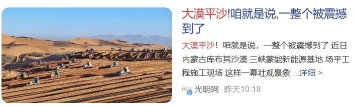 在“死亡之海”里修建“光伏長城”,從此讓“沙土”變?yōu)?ldquo;沙金”,人民日報等多家媒體對此爭相報道,網(wǎng)友們大為贊嘆:“太震撼了!了不起!”