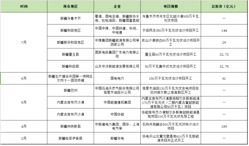今年7月,新疆地區(qū)光伏治沙項目集中開工,據(jù)光伏產(chǎn)業(yè)網(wǎng)不完全統(tǒng)計,僅上半年開工的光伏治沙項目總規(guī)模就達(dá)到了30GW。