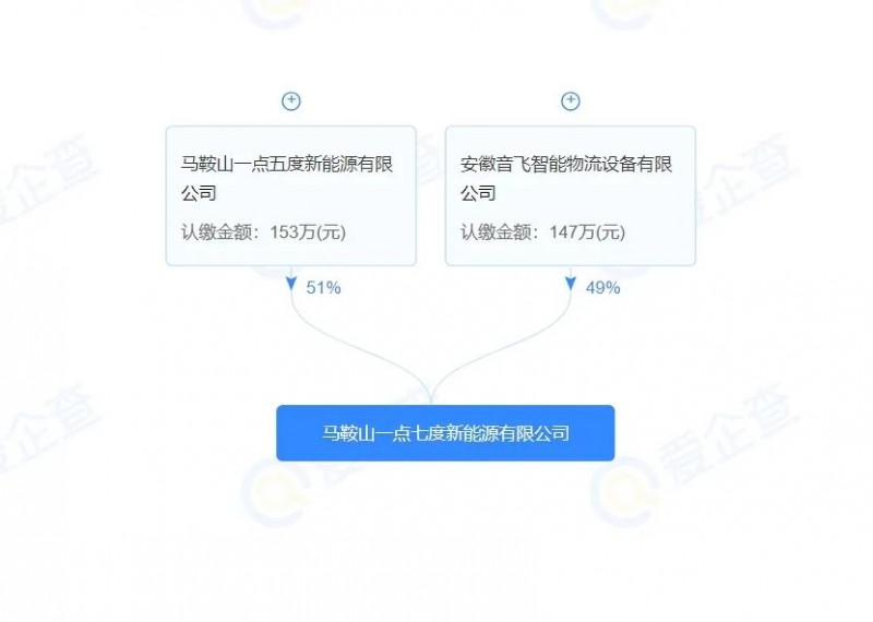 公開信息顯示,馬鞍山一點七度新能源有限公司由馬鞍山一點五度新能源有限公司、安徽音飛智能物流設備有限公司共同持股,前者持股比例51%,后者49%。安徽音飛智能物流設備有限公司是南京音飛儲存集團的全資子公司,南京音飛儲存集團是國際先進的倉儲物流自動化設備及貨架制造企業。