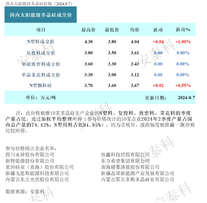 截至本周,國內多晶硅在產企業數量維持在19家,處于檢修狀態的企業為14家,新疆地區受極端天氣影響檢修恢復情況不及預期。據統計,2024年7月國內多晶硅產量為13.8萬噸,環比下降14.53%。根據企業排產計劃,預計8月國內多晶硅產量將與7月持平。