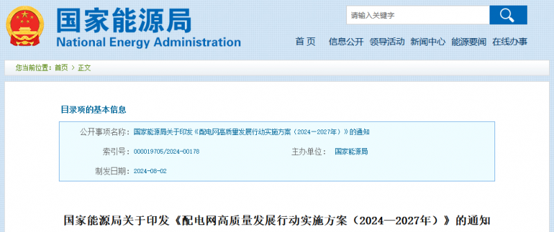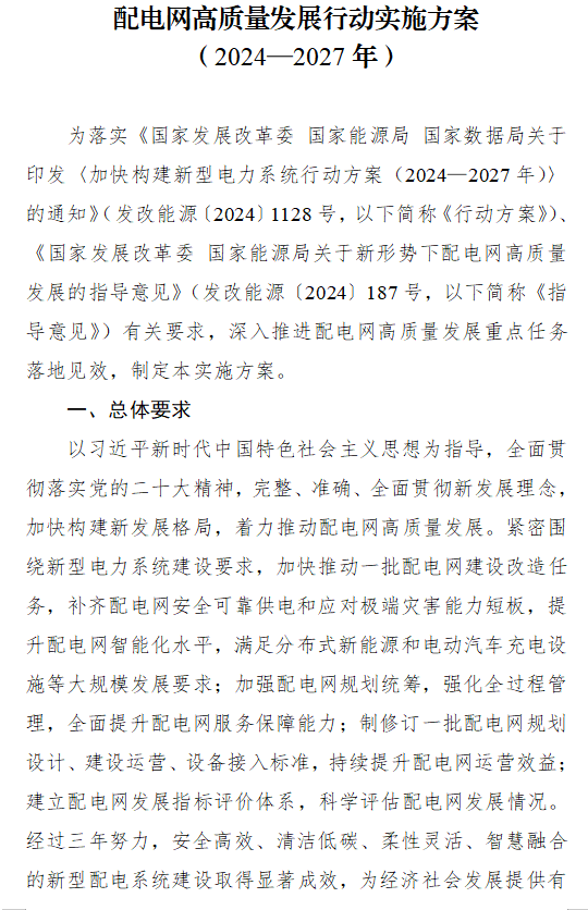 國家能源局關于印發《配電網高質量發展行動實施方案(2024—2027年)》的通知