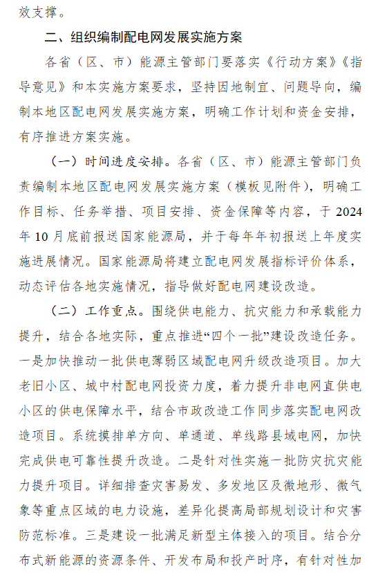 為落實《國家發展改革委國家能源局國家數據局關于印發〈加快構建新型電力系統行動方案(2024—2027年)〉的通知》(發改能源〔2024〕1128號)、《國家發展改革委國家能源局關于新形勢下配電網高質量發展的指導意見》(發改能源〔2024〕187號)有關要求,深入推進配電網高質量發展重點任務落地見效,國家能源局制定了《配電網高質量發展行動實施方案(2024—2027年)》。現印發給你們,請認真組織實施。