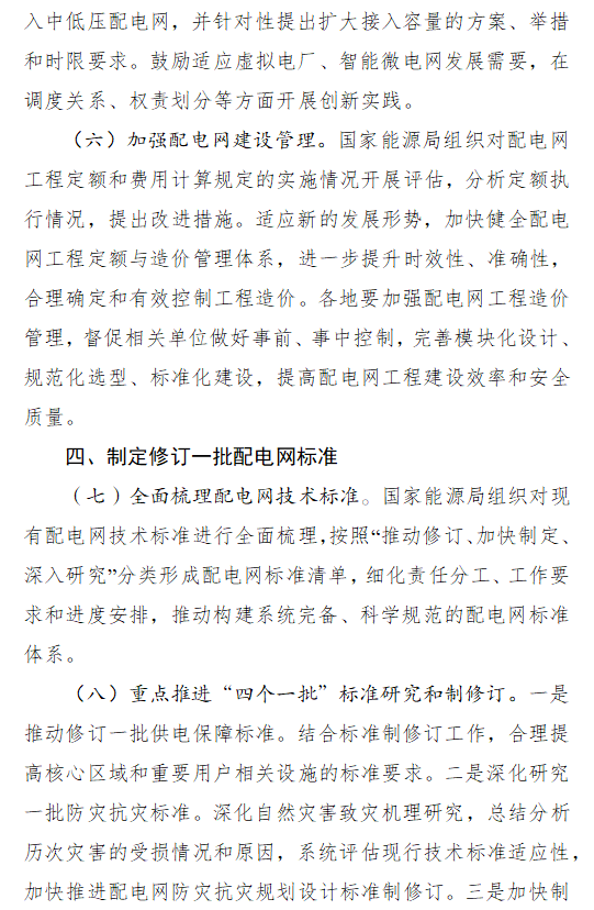 制定修訂一批配電網標準。加快制修訂一批新型主體接入配電網標準。規范新型主體接網的技術要求,促進配電網和新型主體融合發展。適時推出一批分布式智能電網標準。適應分布式智能電網發展需求,加強規劃建設、調度控制、信息安全等方面技術標準的制修訂。
