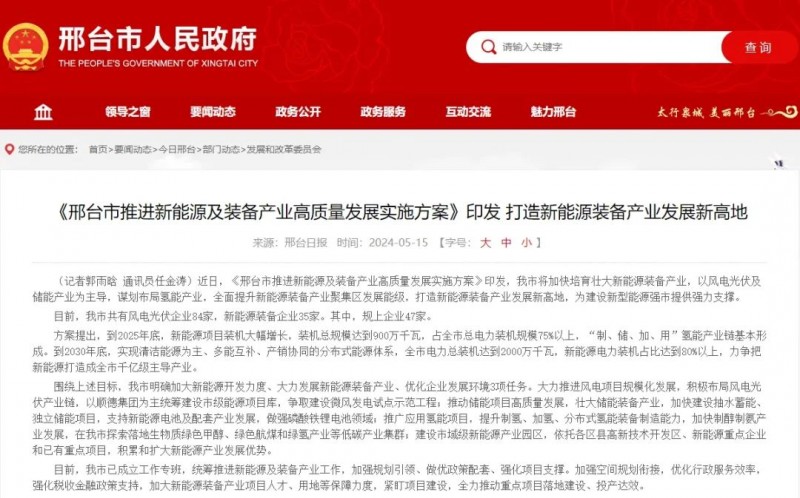 政策利好——2024年5月,《邢臺(tái)市推進(jìn)新能源及裝備產(chǎn)業(yè)高質(zhì)量發(fā)展實(shí)施方案》印發(fā),邢臺(tái)市將加快培育壯大新能源裝備產(chǎn)業(yè),以風(fēng)電光伏及儲(chǔ)能產(chǎn)業(yè)為主導(dǎo),謀劃布局氫能產(chǎn)業(yè),全面提升新能源裝備產(chǎn)業(yè)聚集區(qū)發(fā)展能級(jí),打造新能源裝備產(chǎn)業(yè)發(fā)展新高地,為建設(shè)新型能源強(qiáng)市提供強(qiáng)力支撐。