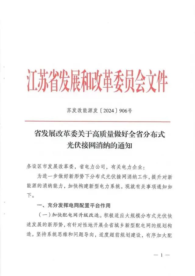 8月12日,江蘇省發展改革委印發《關于高質量做好全省分布式光伏接網消納的通知》。《通知》要求,充分發揮電網配置平臺作用、科學推進系統調節能力提升、積極促進網源協調發展、大力優化接網服務流程4個部分。