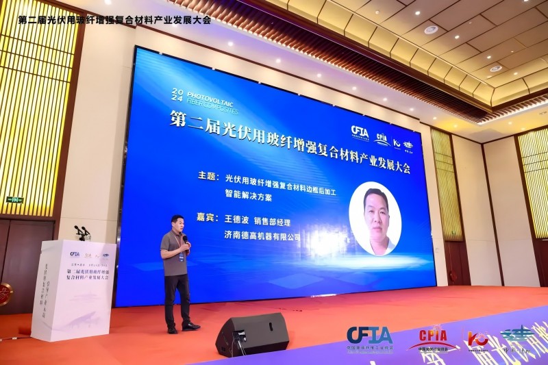 濟南德高機器有限公司銷售部經(jīng)理王德波分享《光伏用玻纖增強復合材料邊框后加工智能解決方案》主題演講。