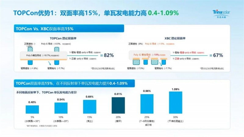 另一大優勢在于,雙面率成為TOPCon吊打XBC的“撒手锏”。